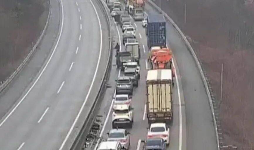 据当地警方通报,事故系一辆卡车散落货厢内物品至路面,导致后方多辆汽车打滑失控引发。
