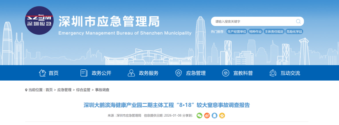 《广东深圳大鹏滨海健康产业园二期主体工程“8·18”较大窒息事故调查报告》公布