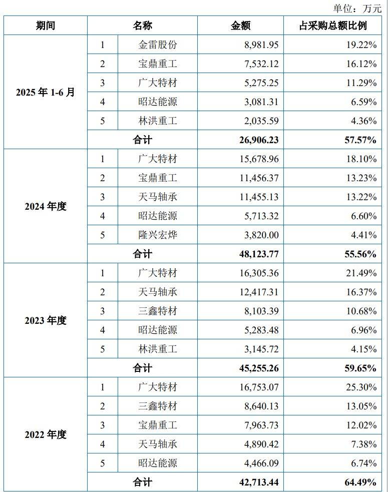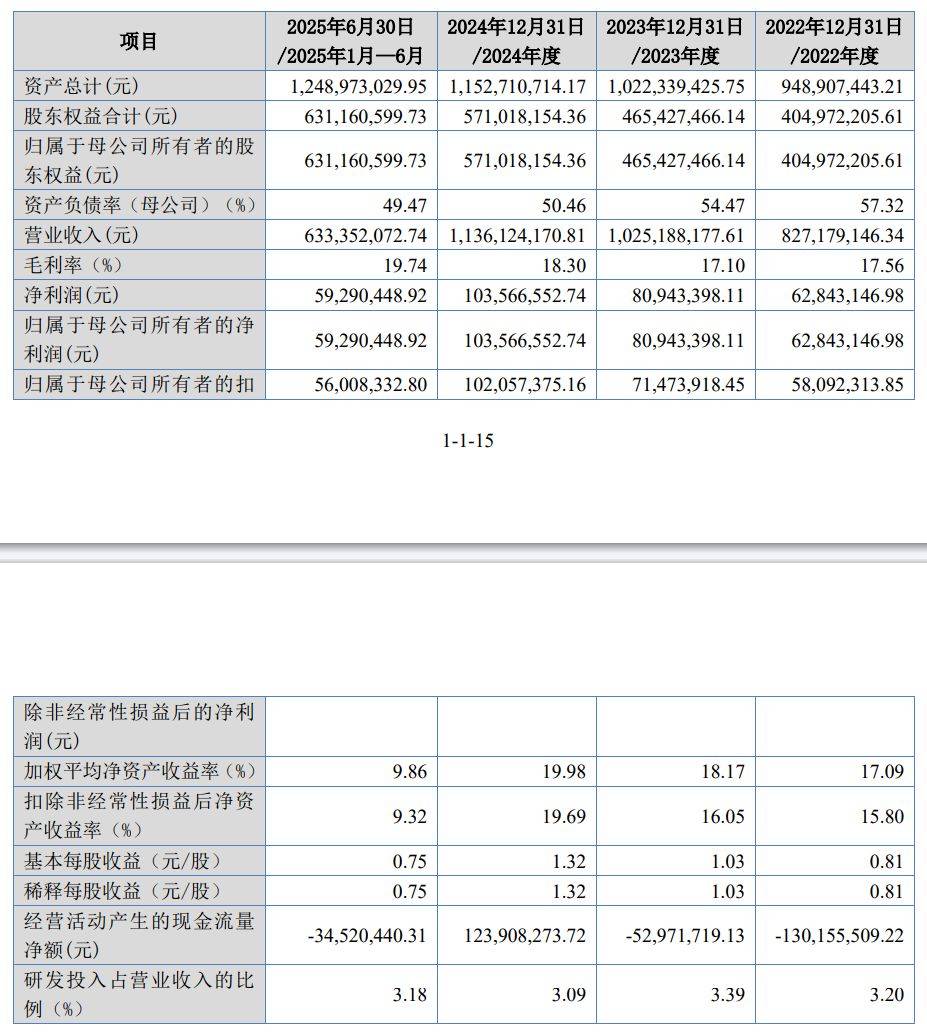 报告期内(2022年至2025年上半年),振宏股份的营业收入分别为8.27亿元、10.25亿元、11.36亿元、6.33亿元;净利润分别为6284.31万元、8094.34亿元、1.04亿元、5929.04万元。
