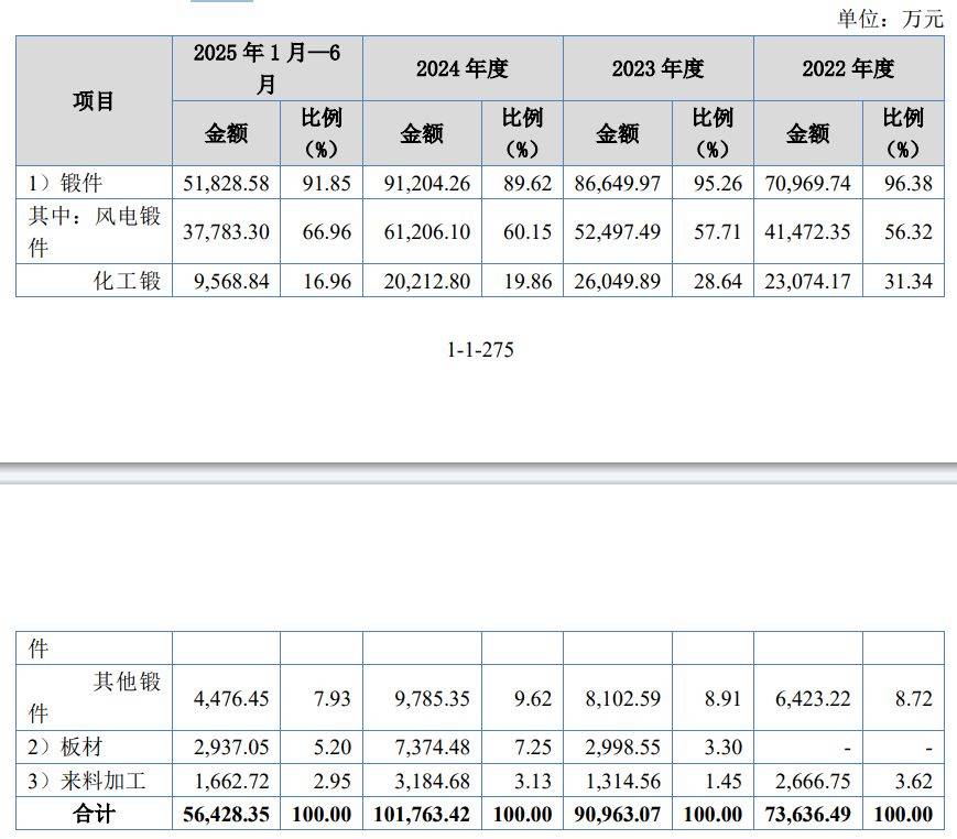 在第一轮问询函中,业绩增长线)业绩增长真实合理性。根据申请文件:①发行人主要产品包括风电锻件、化工锻件和其他大型金属锻件,主要应用于风电、化工、机械、船舶、核电等下游领域。国内风电行业发展受政策影响较大,历史上数次出现因政策驱动导致的“抢装潮”以及“退潮期”,从而造成整个产业链需求出现较动。②报告期内,发行人营业收入分别为82,717.91万元、102,518.82万元和113,612.42万元,扣非归母净利润分别为5,809.23万元、7,147.39万元和10,205.74万元。③报告期内,发行人对主要客户西门子能源、三一重能等客户销售金额下滑较大,对运达股份、恩德能源等客户的销售金额增长较快。