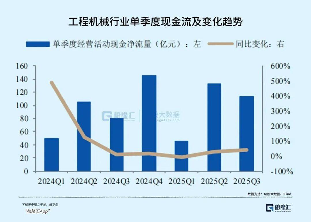 2025年工程机械行业的复苏不仅体现在行情上,更扎根于扎实的基本面。前三季度行业营业总收入达3036.12亿元,同比增长10.84%;归母净利润294.38亿元,同比增幅高达19.72%,盈利能力逐季度提升,销售毛利率从一季度的24.86%攀升至前三季度的25.48%。