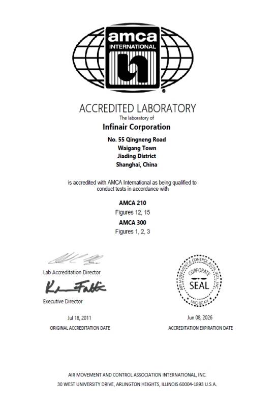 英飞风机高度重视产品性能的科学验证与可靠性保障,拥有通过CNAS国家认可并获得AMCA认可的专业实验室,具备完整的测试能力,包括:①风机空气性能测试②噪声测试③振动测试④消防排烟与耐高温测试,实验数据与国际标准接轨,使其工业风机性能参数具备较高可信度,也为大型工程项目提供了可靠的技术支撑。其它资质认证:CCCf、AMCA、TUV、CE、ATEX、EG、CCCs等齐全。