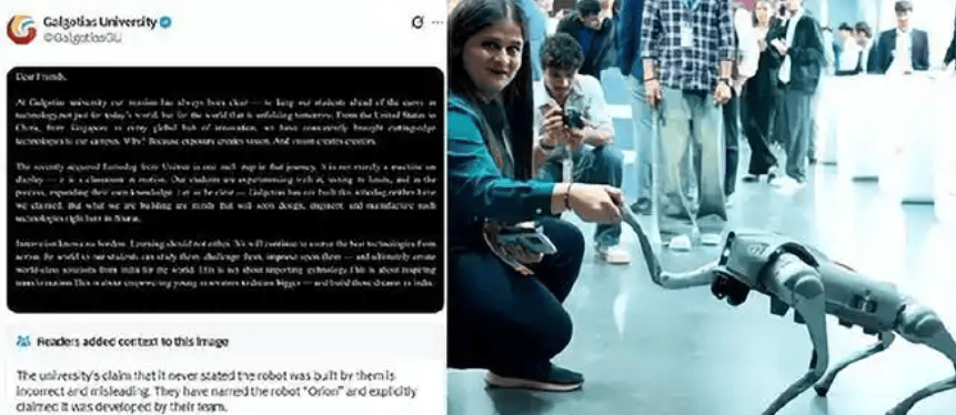 在社交媒体广为传播的一段视频显示,一名女性在展会现场向媒体介绍时称,是该校的团队自主研发了这台机器狗,并将其名为“Orion”。然而,在被网民质疑这是将进口产品冒充为自主研发后,校方却辩称“从未宣称”制造了这台机器狗。