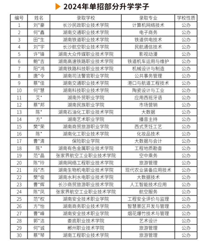 :组建由 2 名正高级教师、2 名特级教师领衔的单招教学团队,96 名专职教师中 33% 具备硕士学历,三分之二以上拥有中高级职称。核心教师均参与过湖南单招命题研讨或阅卷工作,深谙本地命题规律,能结合三一重工、中联重科等合作企业的人才需求,同步渗透职业素养培养,让教学更贴合升学与就业双重需求。